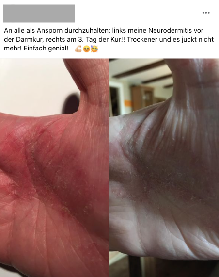 Deswegen möchte ich jedem, der auch mit einer Hautkrankheit zu kämpfen hat, empfehlen, dieser Kur eine Chance zu geben und selbst zu erfahren, wie gut es tut :-).