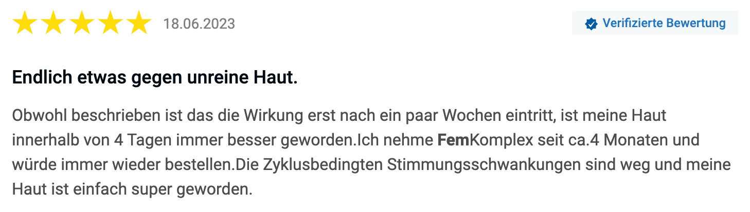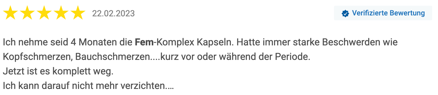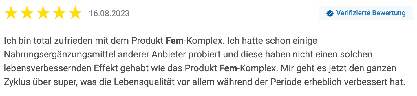 Für die eine oder andere sind vielleicht auch hormonelle Präparate der richtige Weg. Der Fem-Komplex ist in meinen Augen aber in jedem Fall der beste Weg, wenn man eine schonende, pflanzliche Methode bevorzugt.