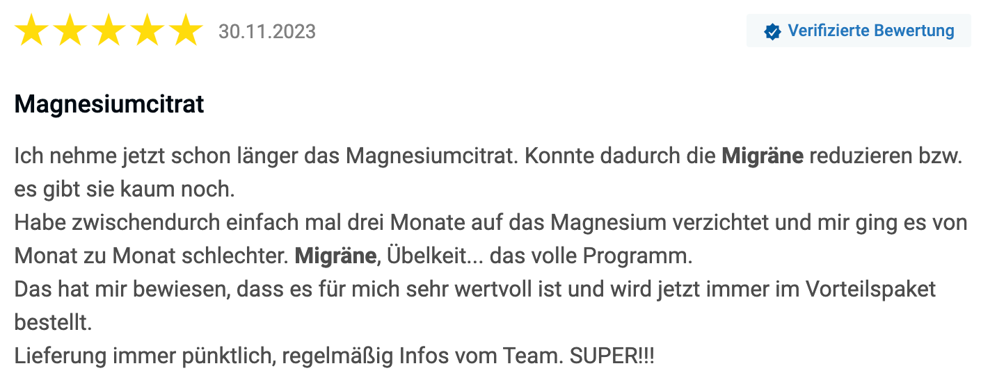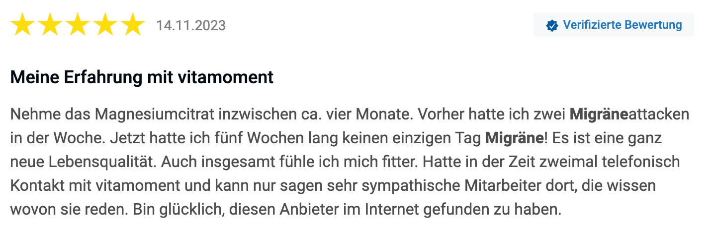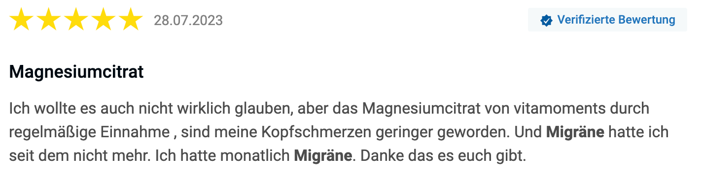 Dagmar stieß bei ihrer Recherche auf einen Testsieger, das Magnesiumcitrat von VitaMoment.