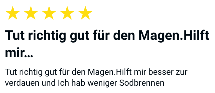 Sie erzählte mir davon, dass sie nach Jahren zum Glück endlich eine Lösung gefunden hatte. Seitdem sind nicht nur das Brennen in der Kehle, das unangenehme Aufstoßen und der brodelnde Magen weg. Sie fühlt sich auch viel energiegeladener und kann endlich wieder das Essen und die Zeit mit Familie und Freunden richtig genießen! Ihr Magen ist viel seltener gereizt und sie viel seltener schlecht gelaunt.