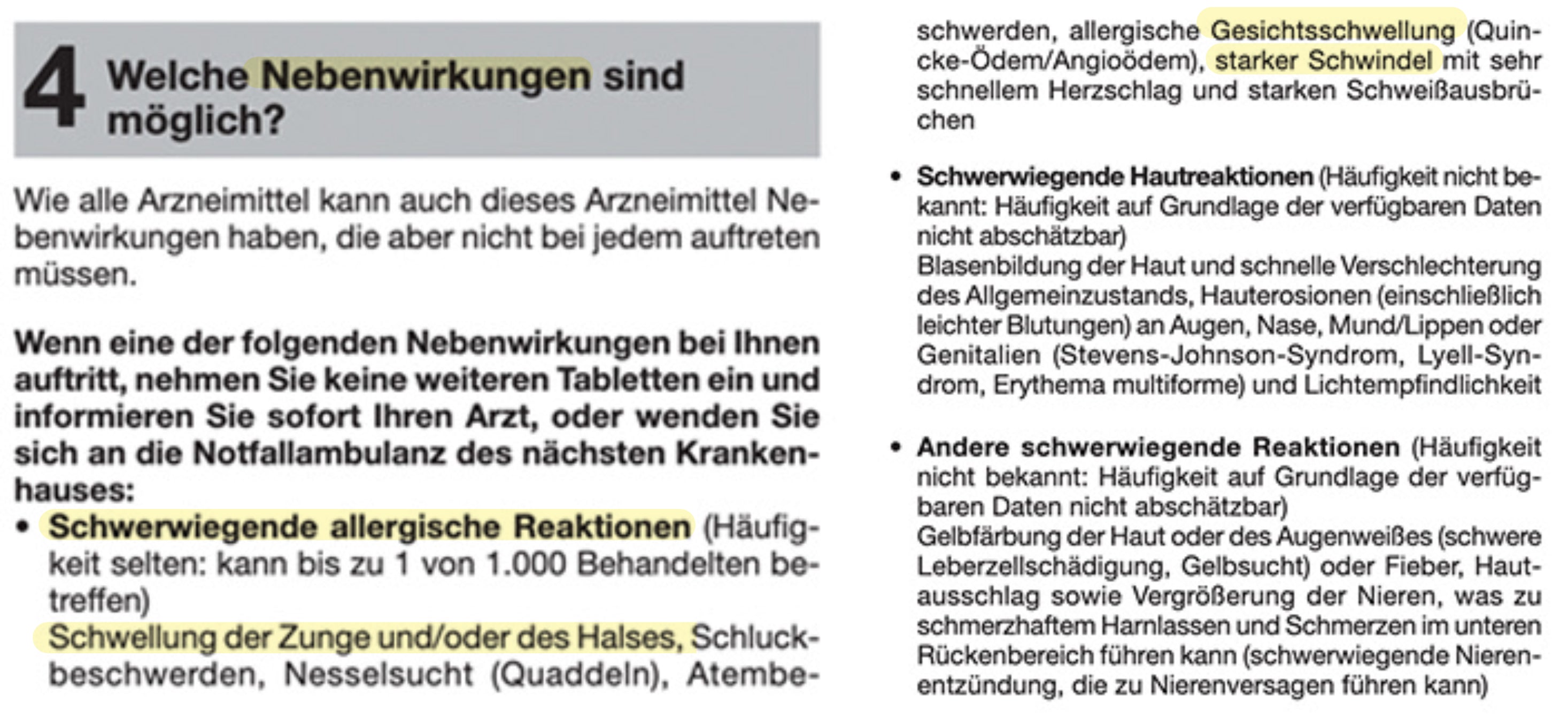 Nachdem ich mir den Beipackzettel durchgelesen hatte, war ich ziemlich abgeschreckt, denn zu den häufigsten Nebenwirkungen zählen Magen-Darm-Beschwerden wie Durchfall, Verstopfung oder Blähungen. Auch Kopfschmerzen und Schwindel treten auf. Im schlimmsten Fall führt die Einnahme zu schweren allergischen Reaktionen.