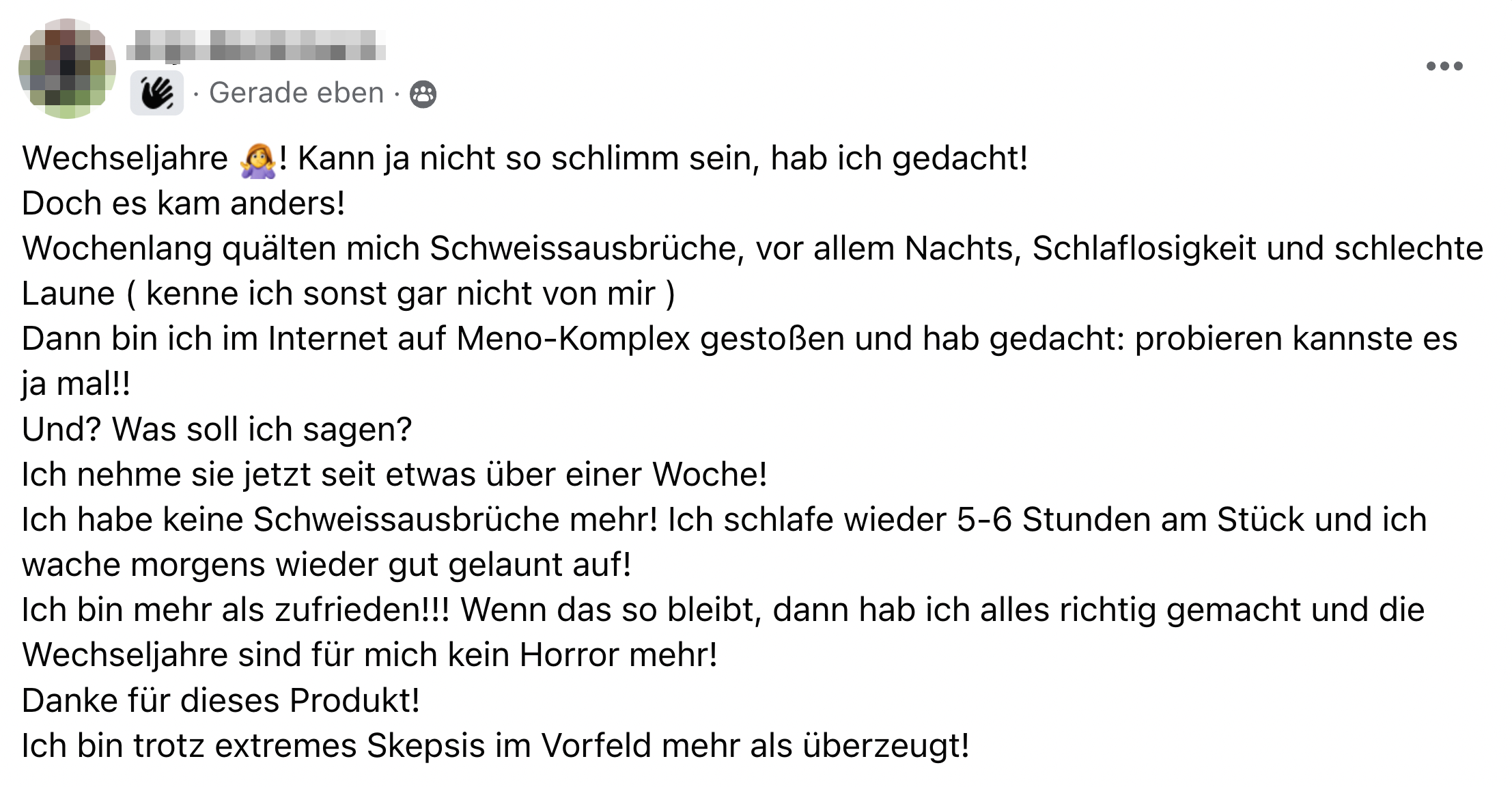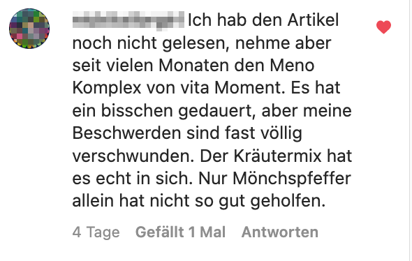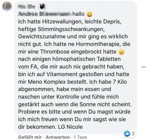 Mit der Meno-Balance-Kur erhielt ich Zugang zu einer geschlossenen Facebook Community. Dort berichteten zahlreiche Frauen von ähnlichen Symptomen und persönlichen Situationen.
